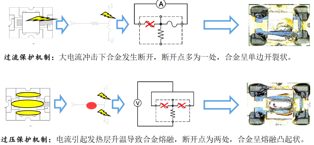 传统的保险丝只有过电流保护功能,当电路中电流异常升高时,保险丝会自身熔断切断电流,而当电路中电压异常升高时,则无法起到保护电路安全的作用。SCF具有过电流和过电压双重保护功能,不仅能在过电流异常时熔断,过电压时异常发生时,SCF也会熔断,起到保护电路安全运行的作用。